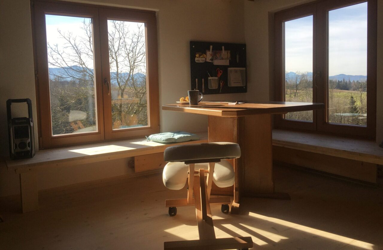 In meinem Kopf gab es diesen Raum schon länger. Ich wusste nicht wo, aber ich war der Überzeugung dass es ihn braucht. Mir zuliebe. Ich hatte auch darüber nachgedacht einen Raum anzumieten. Dass meine Werkstatt nun doch Zuhause und in der Art entstanden ist, verdanke ich jedenfalls hauptsächlich meinem Mann, der hier eigentlich seine Werkstatt geplant hatte. Seine Wert-schätzung mir und meiner Arbeit gegenüber, hat ihn zu einer anderen Lösung geführt.