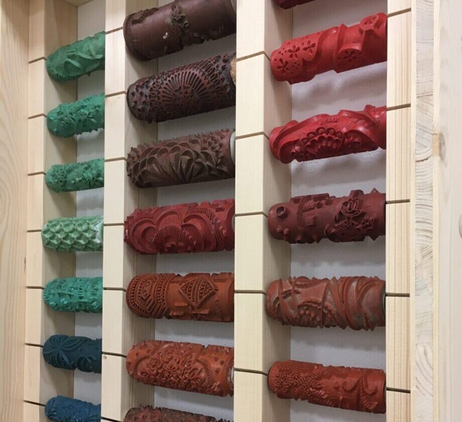 Ein ganz besonderes Detail in meiner Werkstatt zeige ich dir aber jetzt schon. Die Malerwalzen. Um sie optimal zu lagern und auch jederzeit griffbereit zu haben, entstand diese Wandkonstruktion (am Bild zu sehen). Marke Eigenbau, versteht sich. Sieht, wie ich finde, hübsch aus und macht ausserdem unglaublich viel Freude beim Anblick.